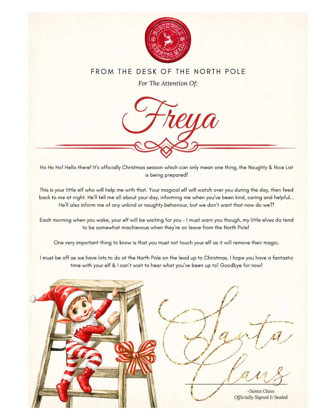 A4 LETTER - ELF ARRIVAL